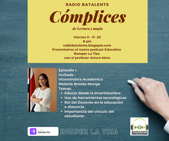 Hoy a las 8 pm en el programa Cómplices presentamos el Cuento en Red "La Ciguapa", de Juan Bosch, de República Dominicana. Además en el podcast educativo Romper la Tiza, la profesora Ivanía Mejías González, del Colegio Humanístico Costarricense, Campus Sarpiquí, nos contará su experiencia con el uso del podcast en el aula.